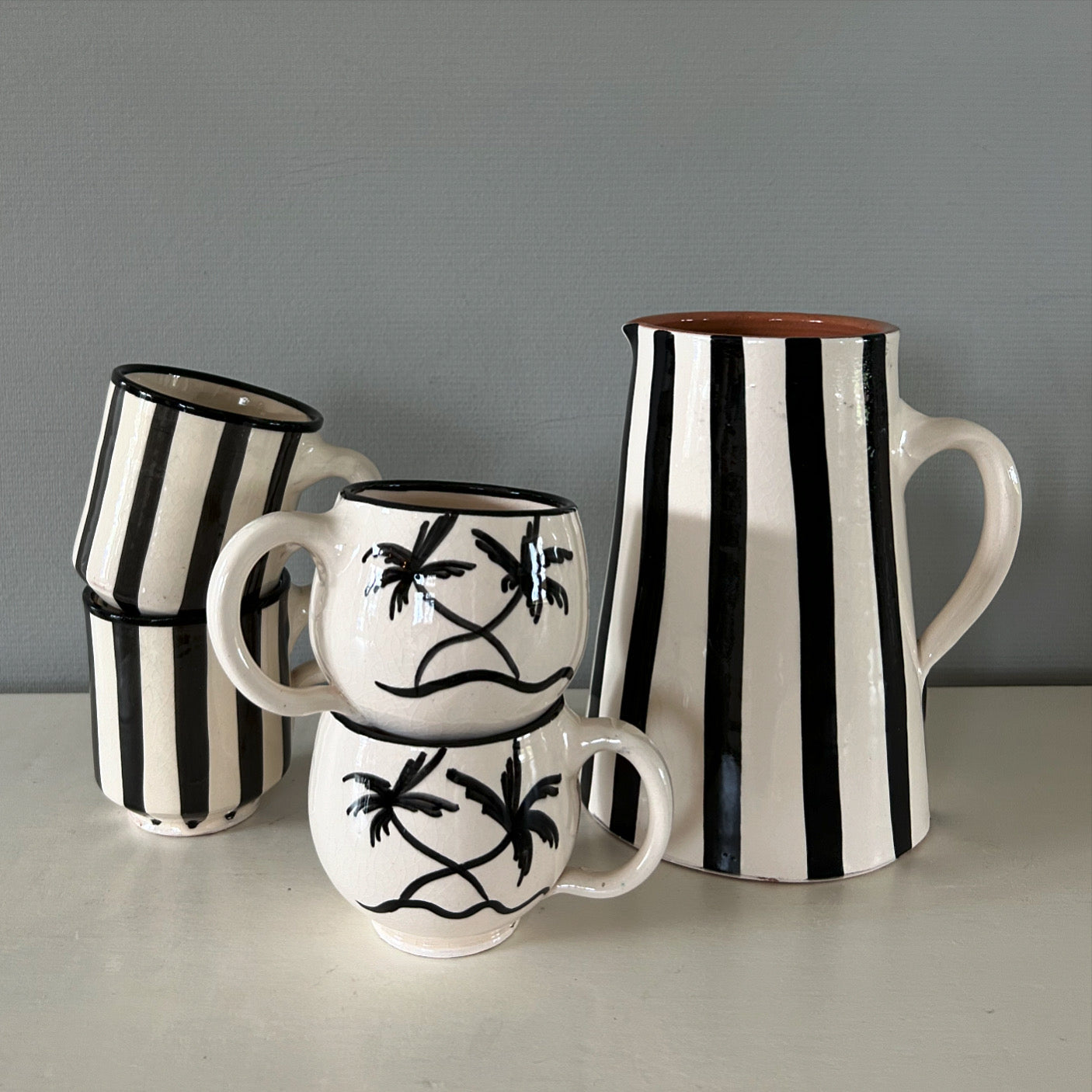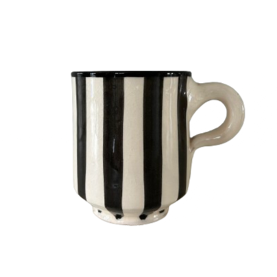 Set van 2 handgemaakte mokken - zwart wit gestreept